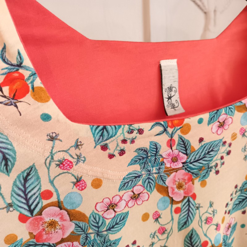 Parementure du col en jersey couleur corail.