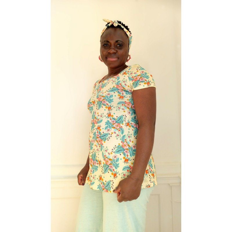 tee-shirt long avec manches courtes, col carré