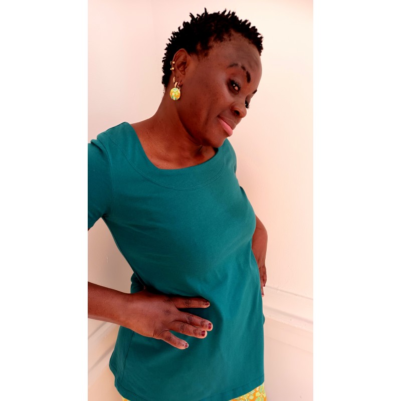 tee-shirt long avec manches courtes, col carré