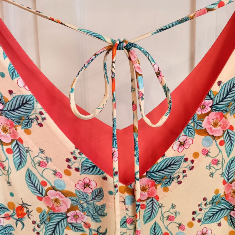 col V et dos V échancré avec cordon à nouer